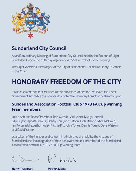 Well folks, Sunderland AFC’s 1973 Cup Winning Team finally received The Freedom of the City award while at the Beacon of Light ?⚽It was long overdue but a special moment for our club’s history and we were glad to have witnessed it❤️
