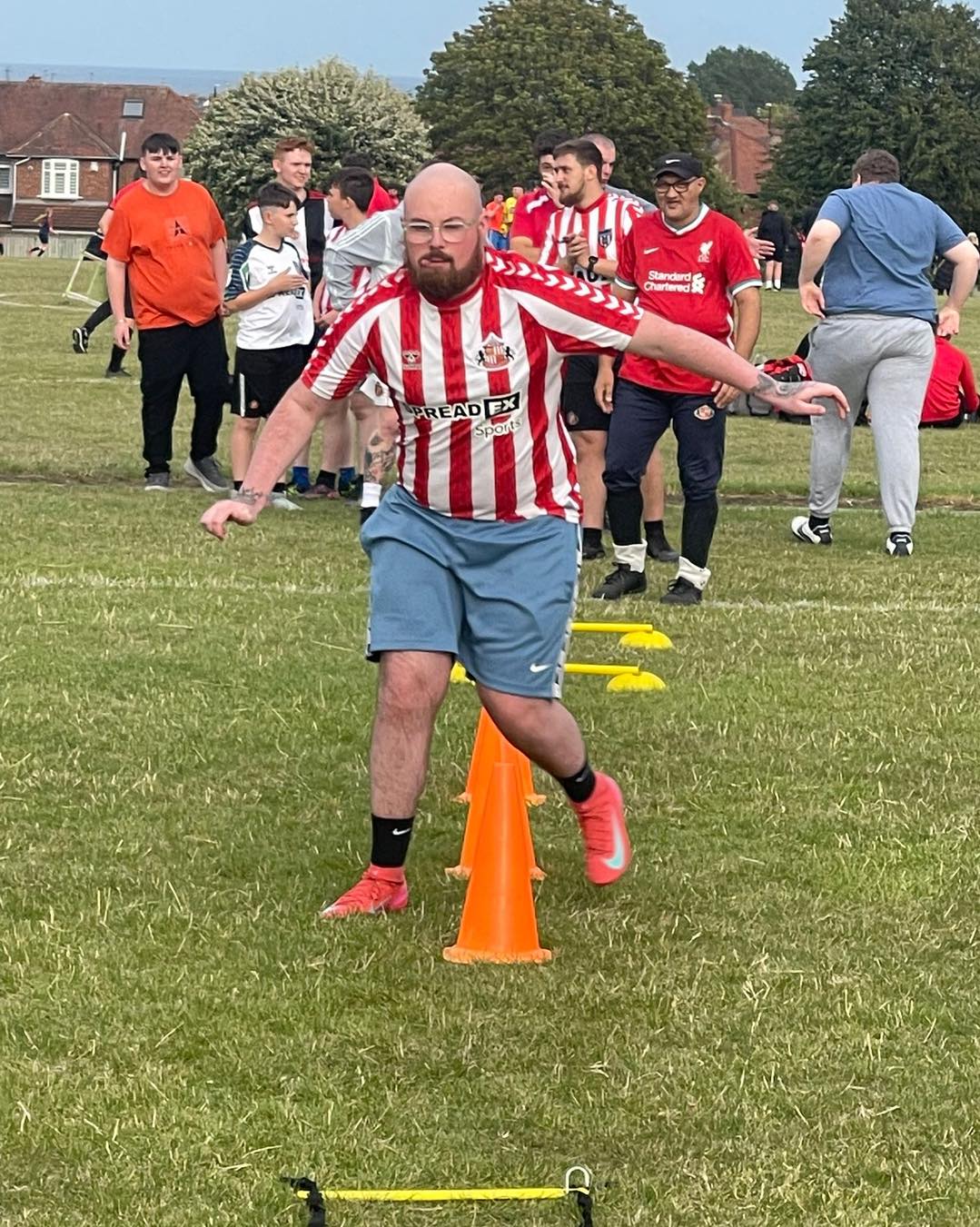 At least once a week we all meet up, support each other and play football. Men of all ages from 18 to 60+ meet in a safe none judgemental space and play the game they love. With a combination of physical exercise and reigniting the flame inside men of their sometimes past love of football has been shown to improve mental health.