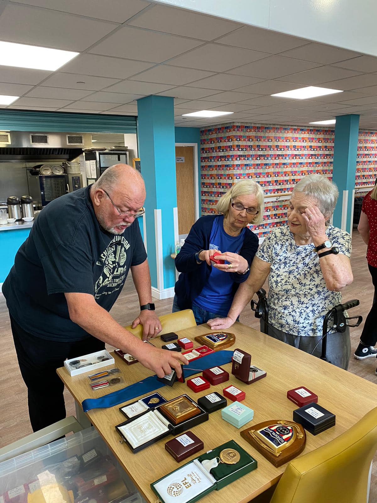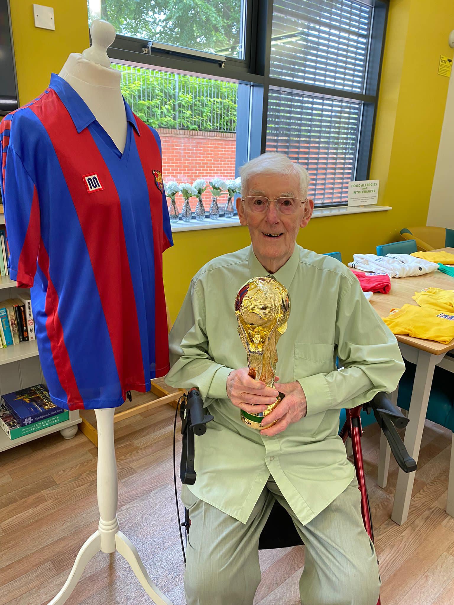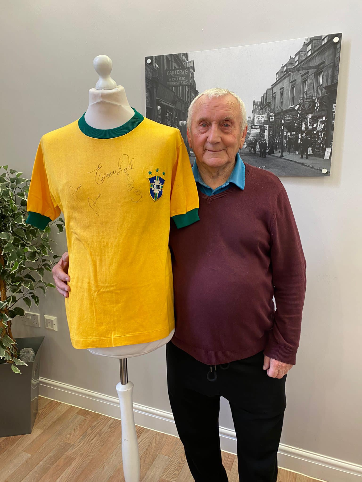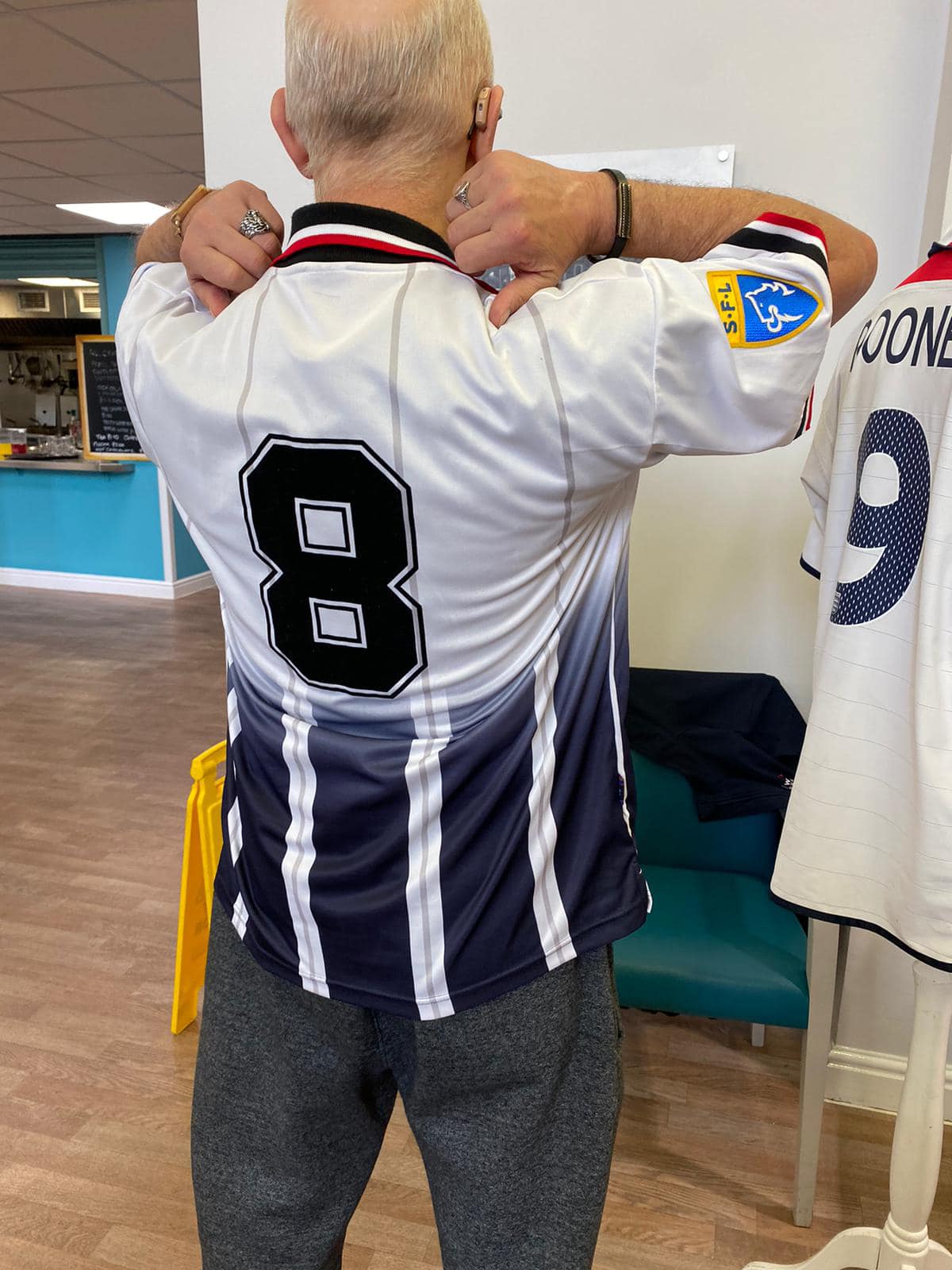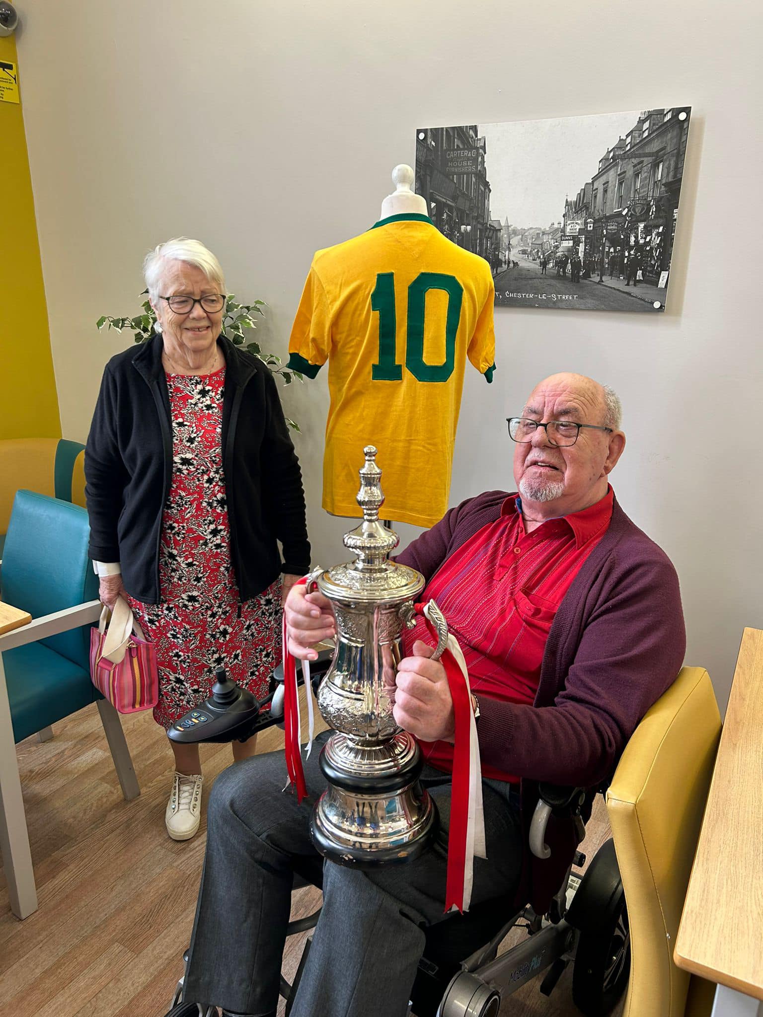 One aspect typifies what we do, after hearing Richard Lee was unable to get down due to his health, we reassured his wife Jean that we would do a little visit, and we got the best response, Richard trying on shirts and holding the trophies