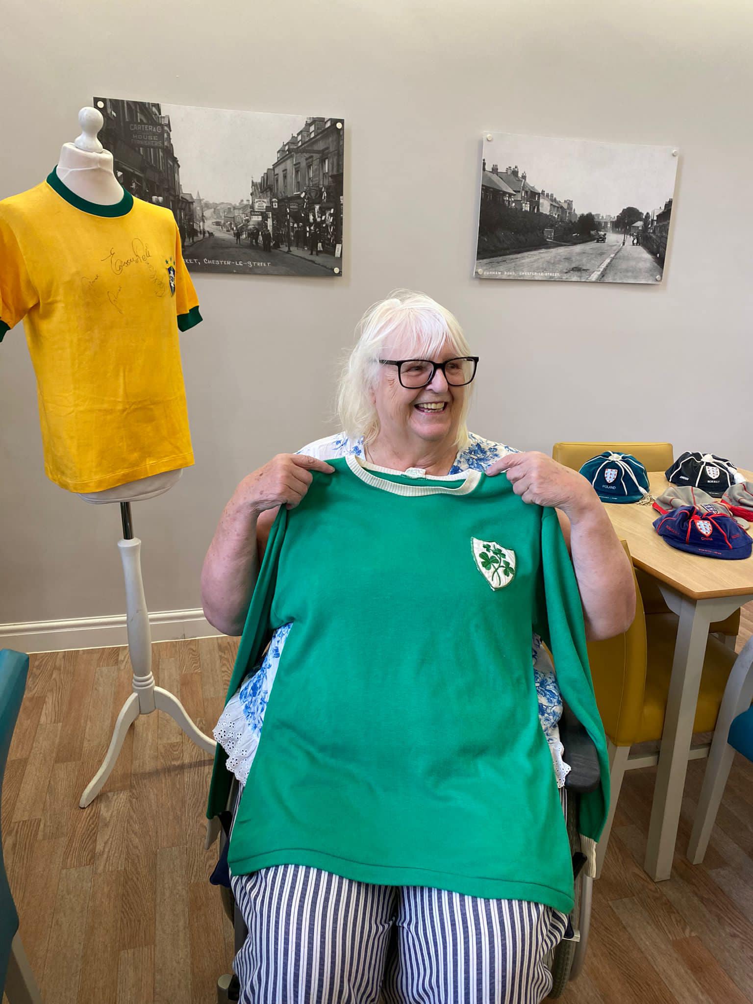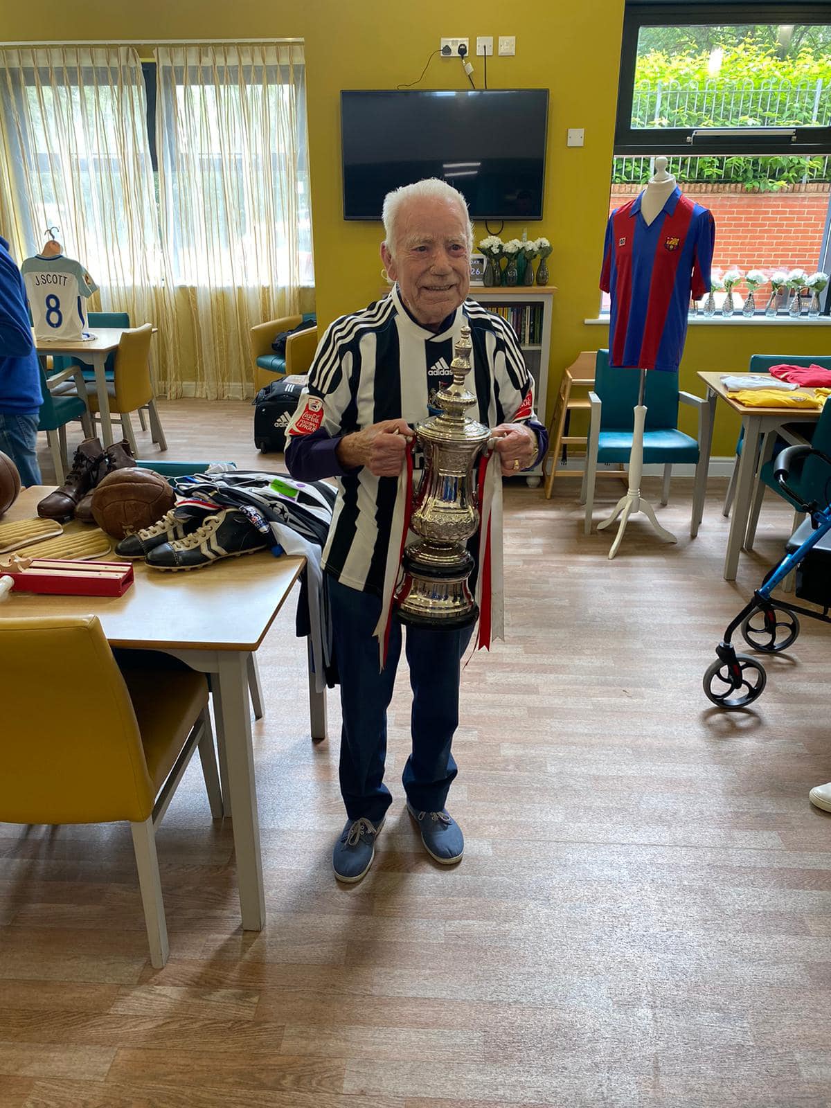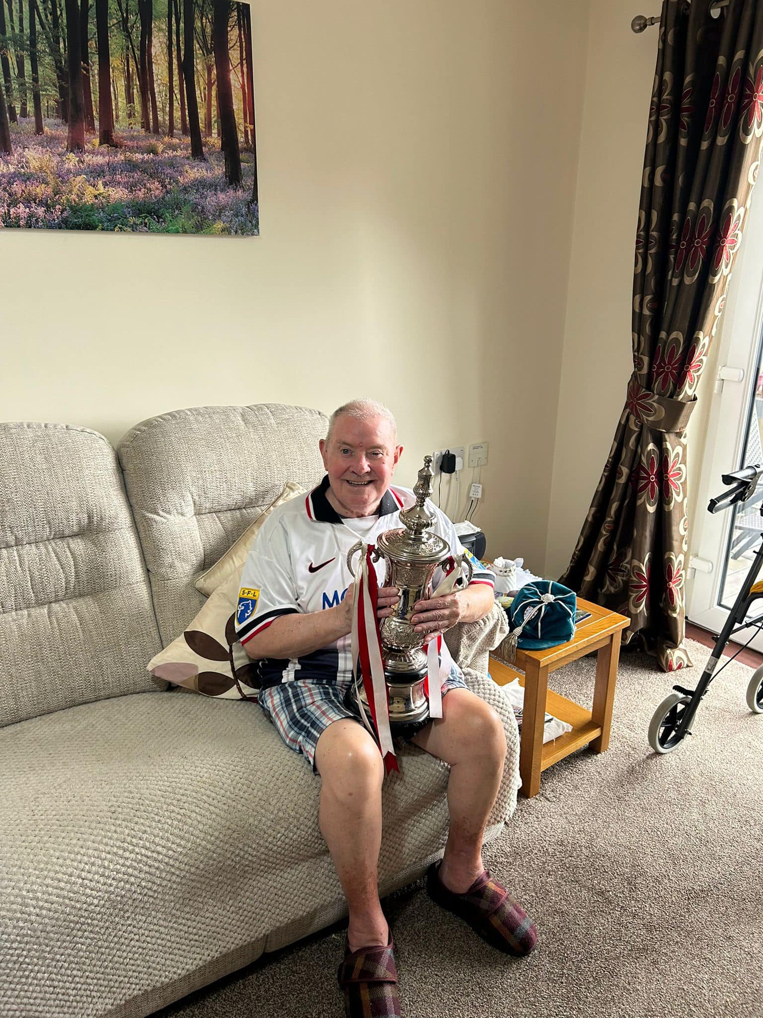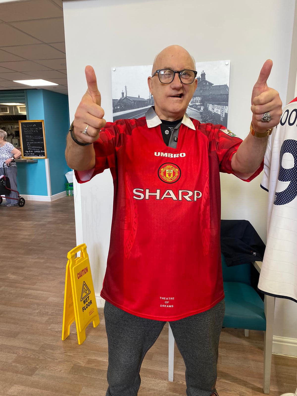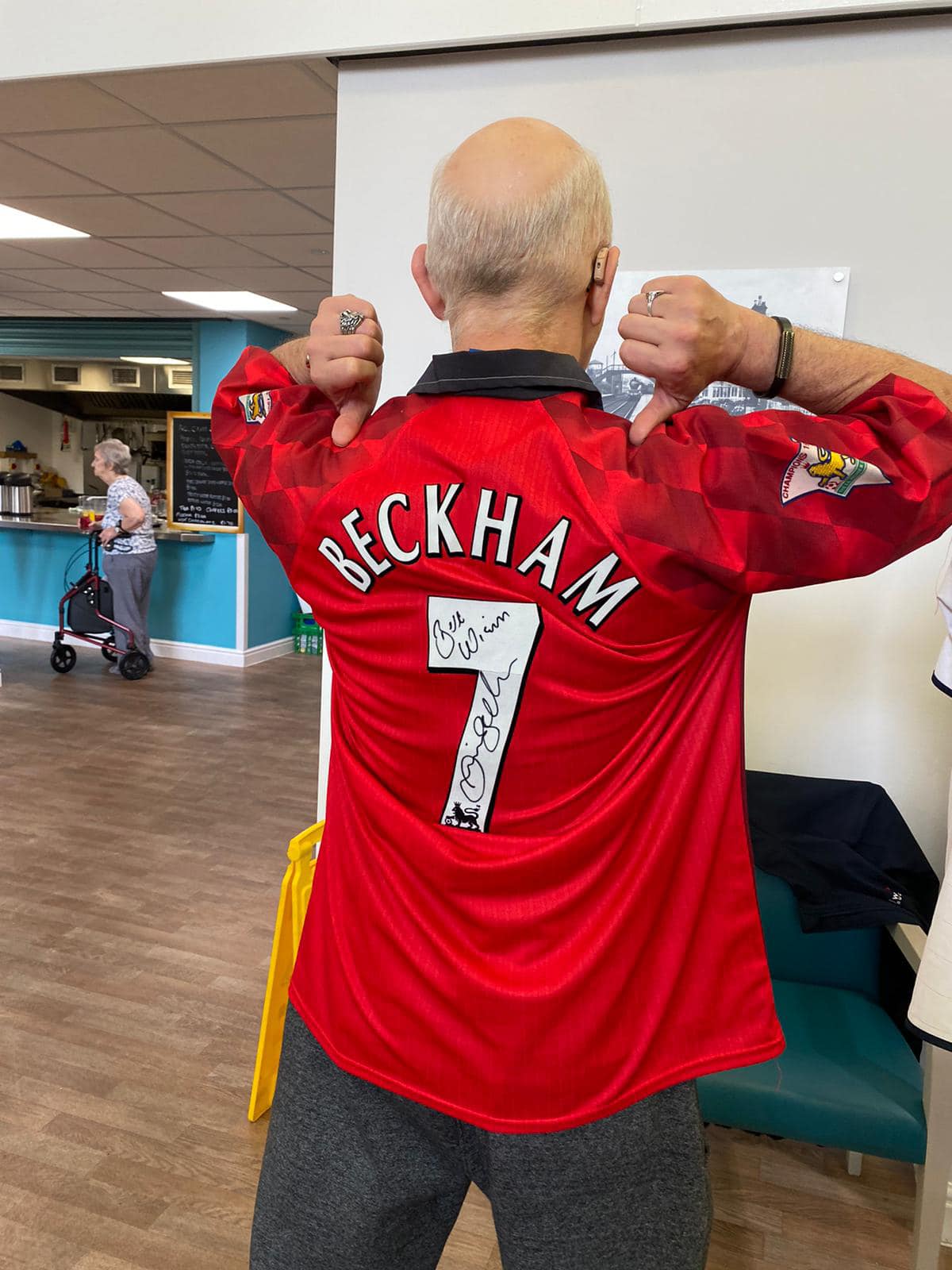 One aspect typifies what we do, after hearing Richard Lee was unable to get down due to his health, we reassured his wife Jean that we would do a little visit, and we got the best response, Richard trying on shirts and holding the trophies