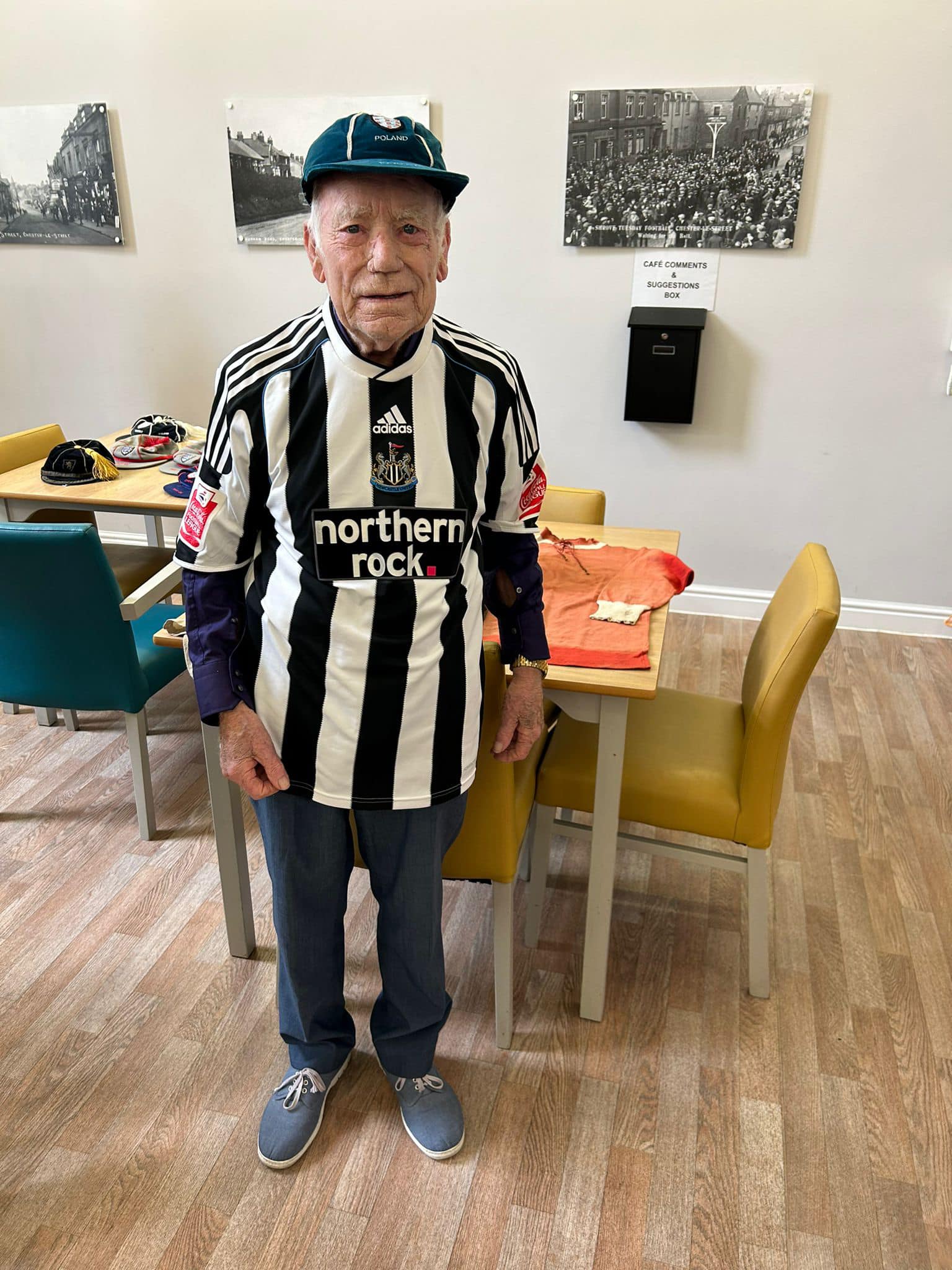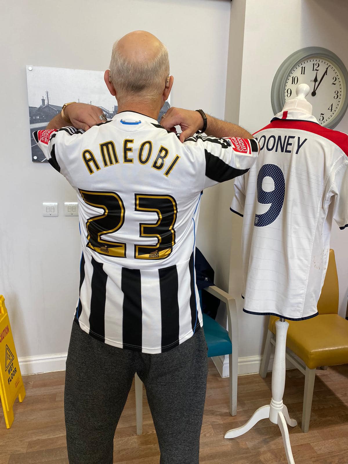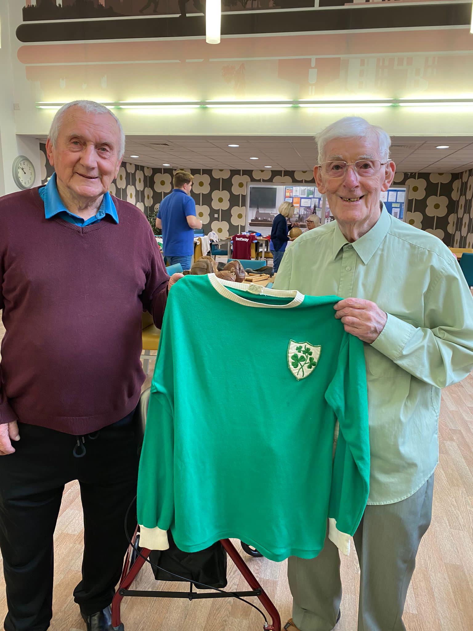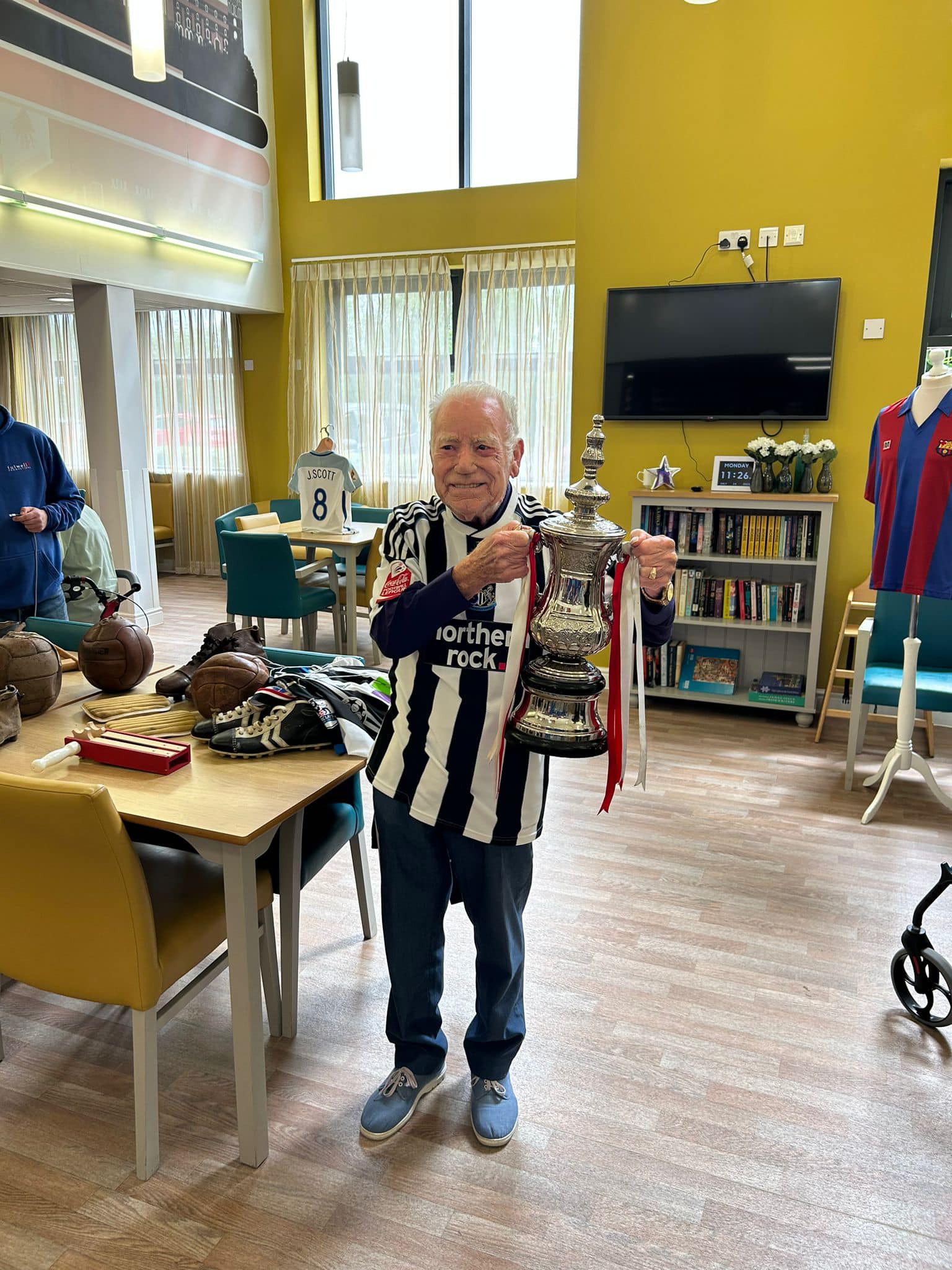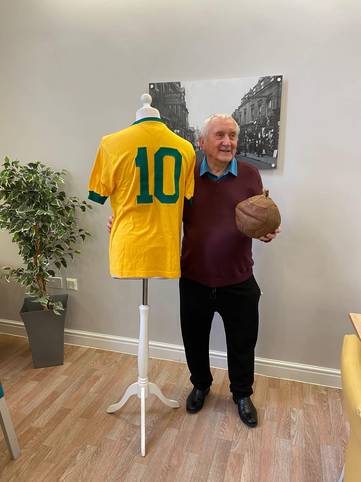One aspect typifies what we do, after hearing Richard Lee was unable to get down due to his health, we reassured his wife Jean that we would do a little visit, and we got the best response, Richard trying on shirts and holding the trophies
