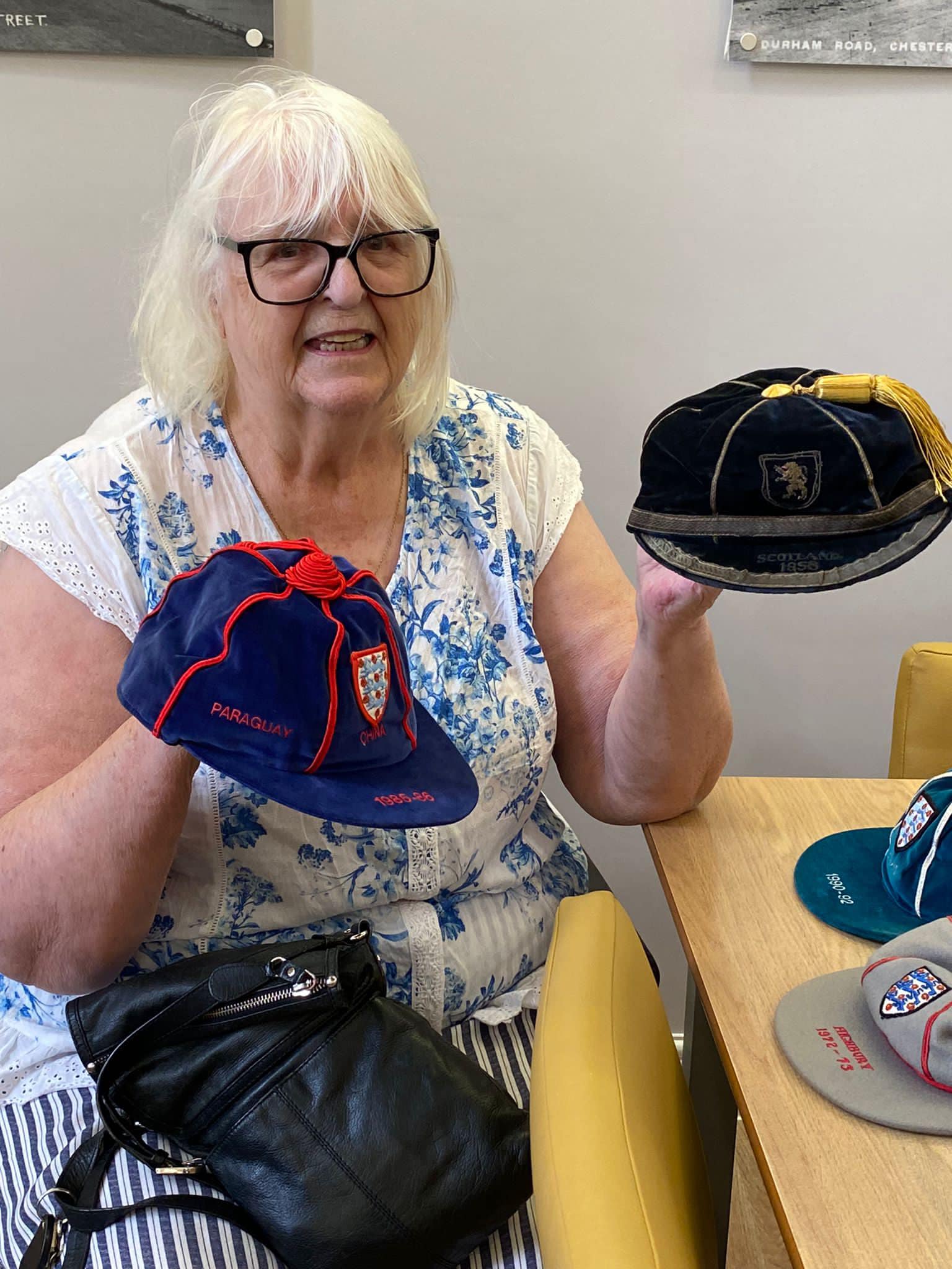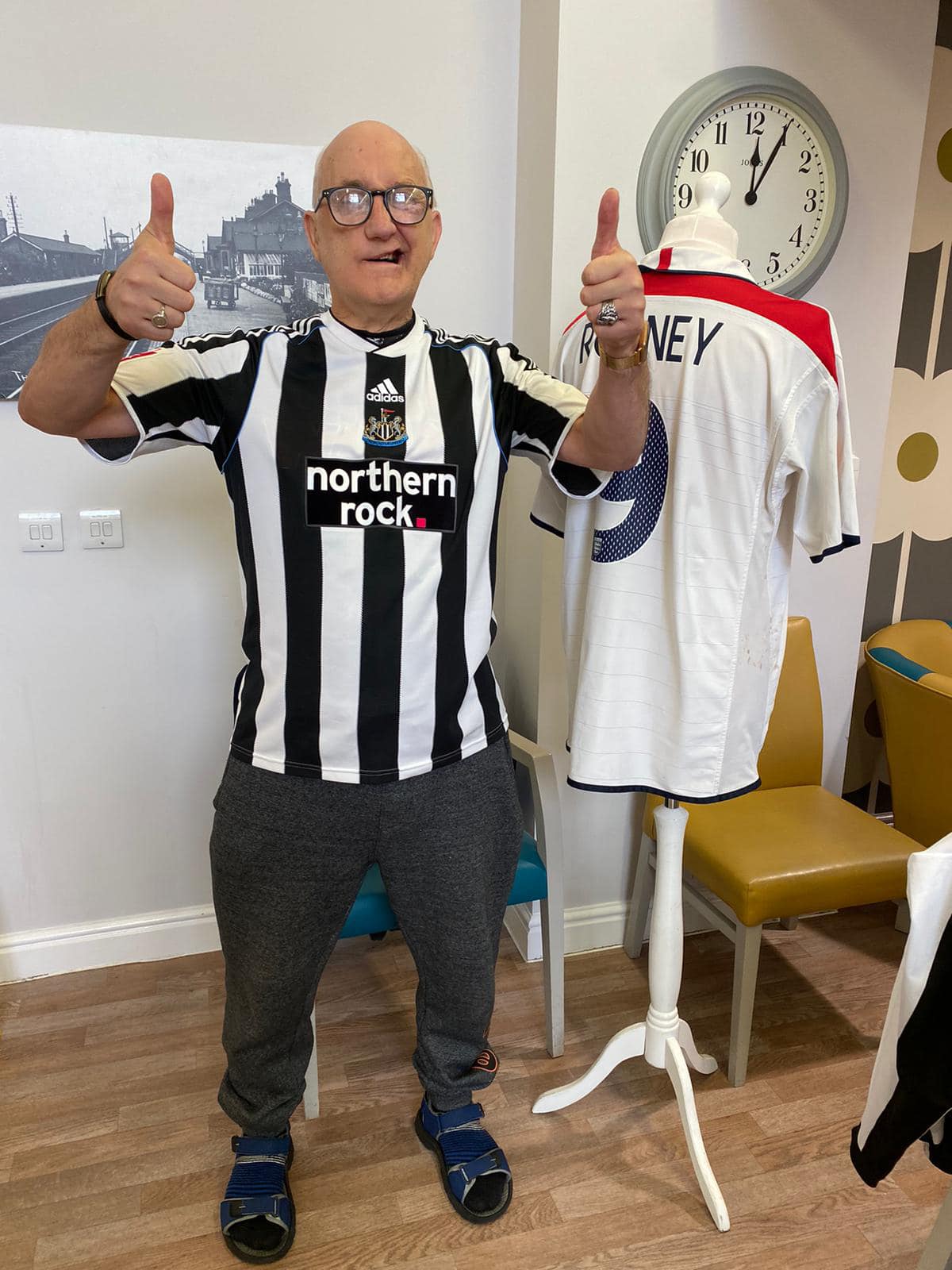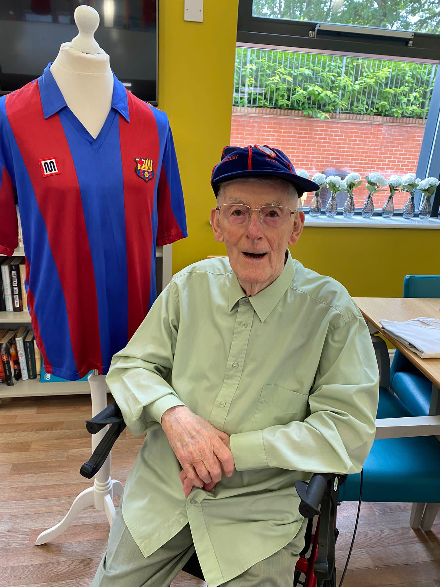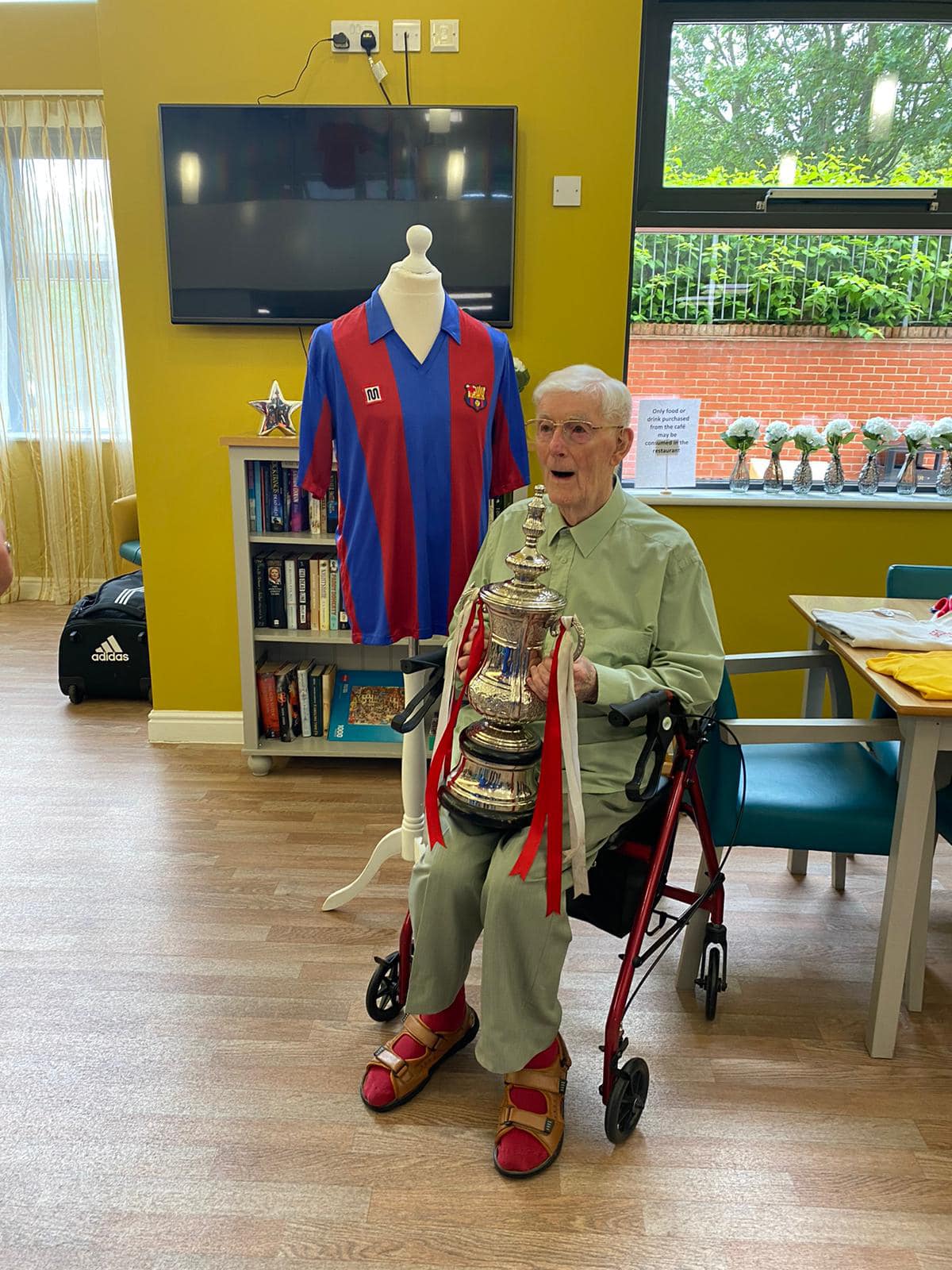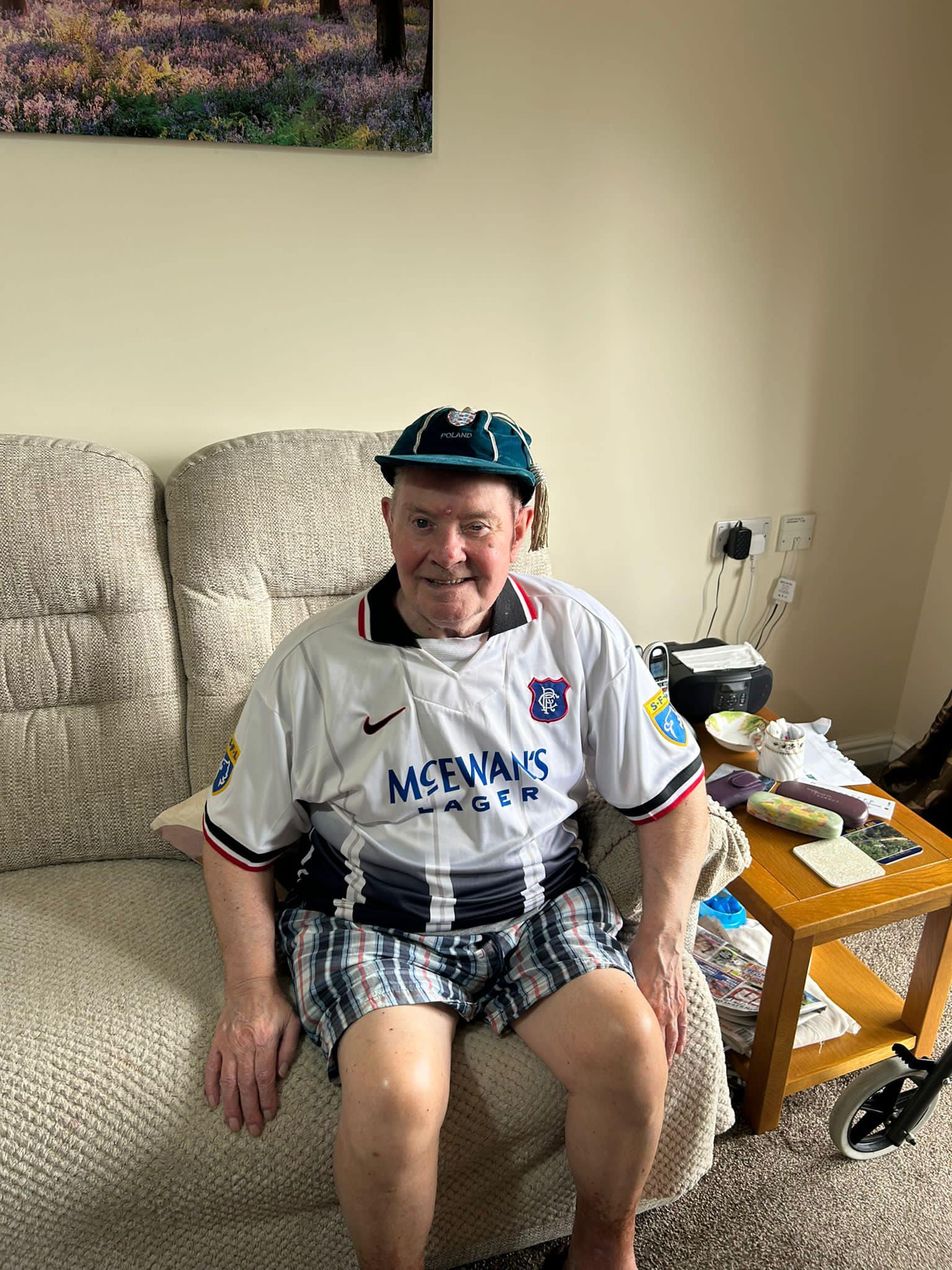 One aspect typifies what we do, after hearing Richard Lee was unable to get down due to his health, we reassured his wife Jean that we would do a little visit, and we got the best response, Richard trying on shirts and holding the trophies