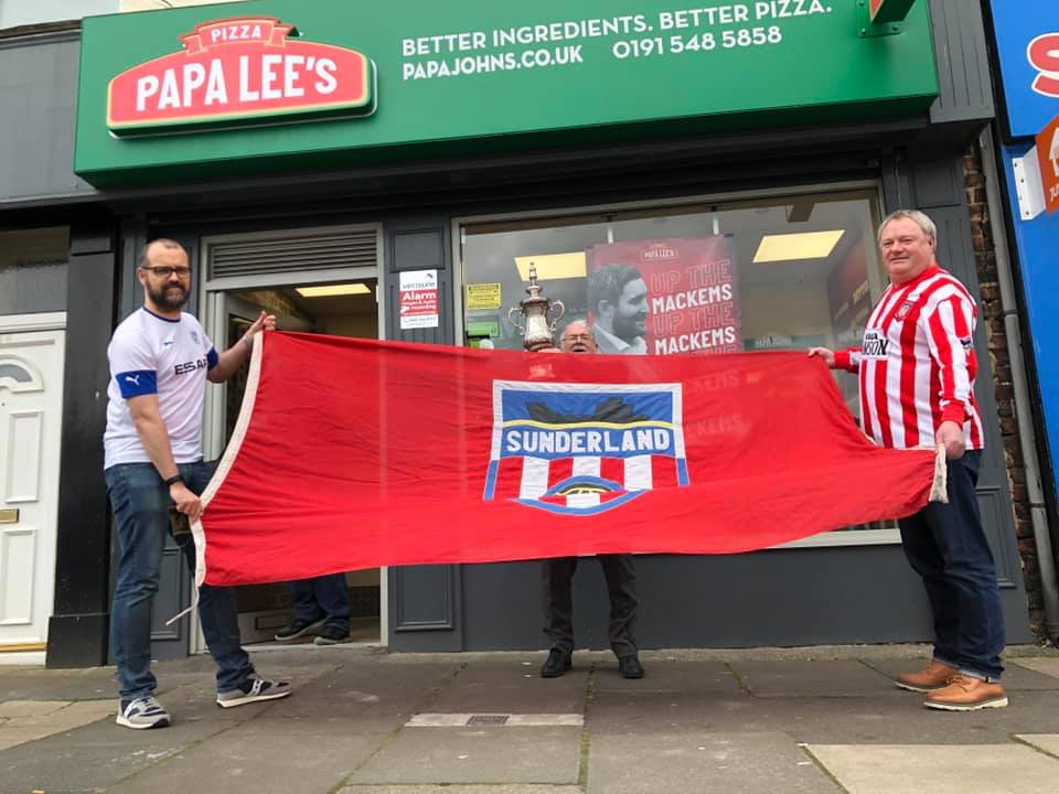 Haway the lads! Here’s the man who lifted the cup in 73 giving his support outside Papa John’s Pizza. Not only that but we met a great guy; Jay Smith, a Tranmere Rovers fan, who now lives here. Looking forward to seeing you in the Fans Museum Jay!